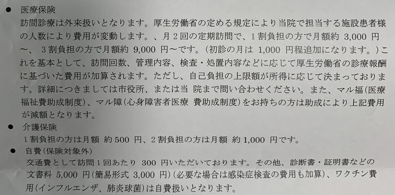 訪問は月2回で、前のクリニックの先生より回数は減るようです。