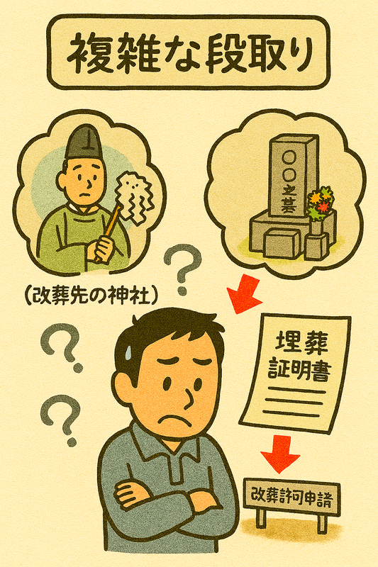役所の許可や宗教儀式もあり、段階を踏んで進めないと無駄に時間がかかってしまいます。